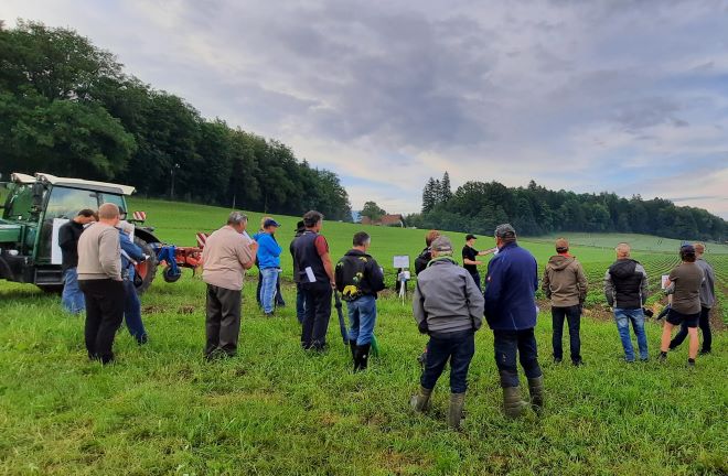 Gestern fand der Sommertag am Wallierhof statt. Es wurden Themen wie ein Sortenversuch Weizen, Weizen herbizidlos anbauen, Untersaat im Mais, Erosionsschutz bei Frühlingskulturen und vieles mehr thematisiert.
