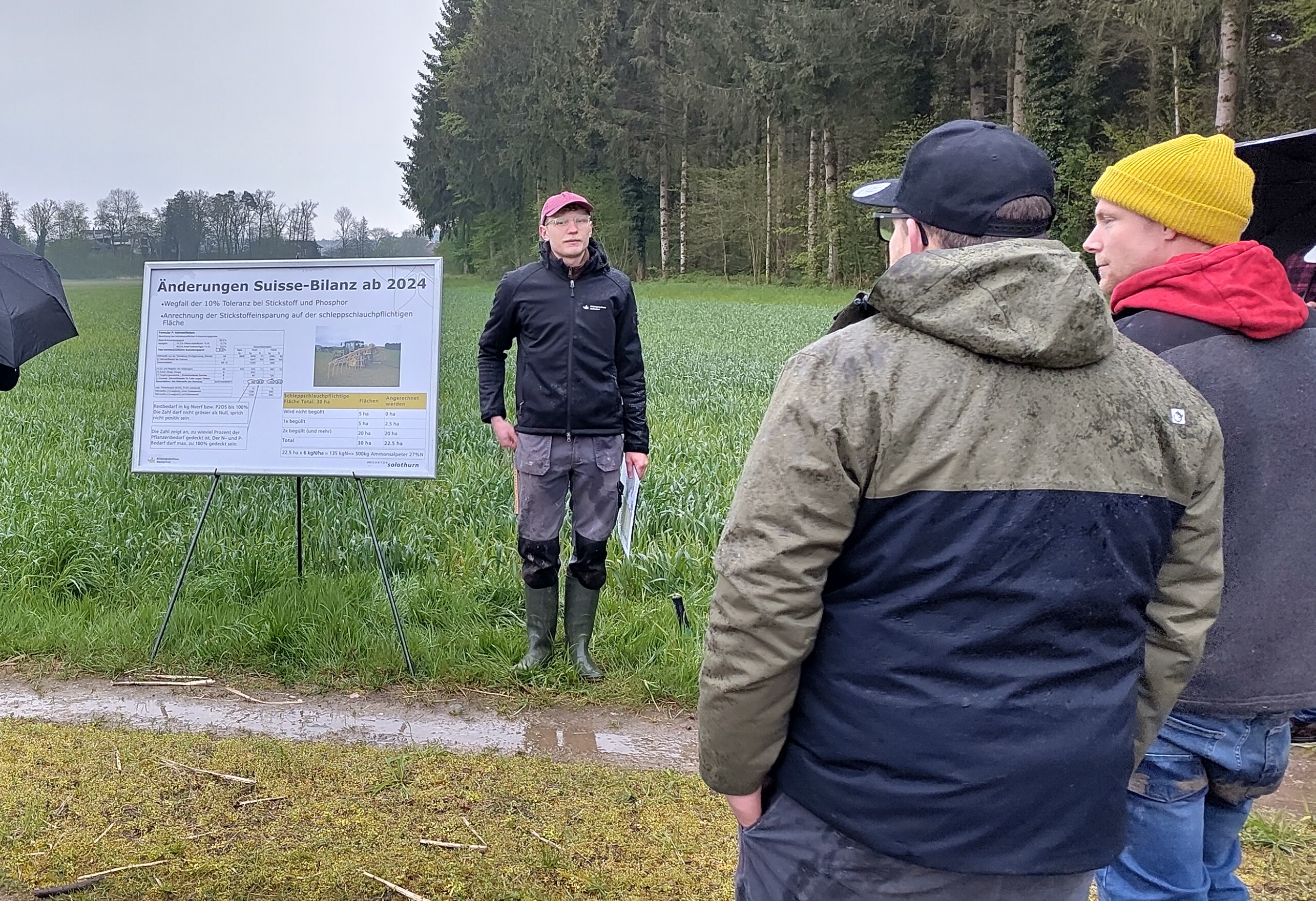 Trotz kalter Witterung und teilweise Schneeregen fanden sich rund 45 Teilnehmer zur Flurbegehung des Landwirtschaftlichen Vereins Gäu- Untergäu am 23. April ein.