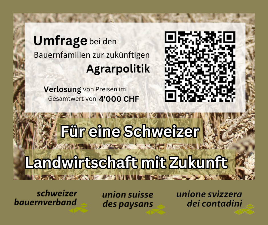 Der Schweizer Bauernverband führt eine Umfrage zum Thema Agrarpolitik 2030 durch. Befragt werden alle in der Landwirtschaft tätigen Personen.