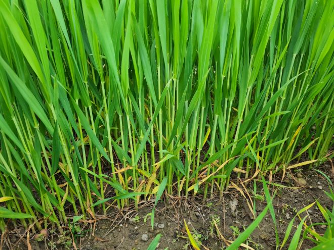 Bei der Gerste sind je nach Sorte und Saattermin bereits die Ähren oder aber die Grannen sichtbar. Abschlussbehandlungen gegen Blattflecken (Netzflecken und Rhynchosporium) sind nur bis zum Beginn Ährenschieben (DC 51) erlaubt. Das wechselhafte Wetter förderte vor allem Sprenkelnekrosen auf dem Fahnenblatt. Ist eine späte Behandlung angezeigt, steht nur noch das Fungizid Pandorra bis zum Beginn der Blüte (DC 61) zur Auswahl.