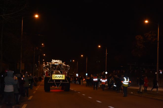 Auch in diesem Jahr standen sehr viele Personen von jung bis alt und auch viele Familien mit Kindern am Strassenrand in Solothurn und klatschten, jubelten und winkten den Landwirtinnen und Landwirten zu. Mit den weihnächtlich geschmückten und beleuchteten Fahrzeugen verzauberten die Landwirte die grosse Bevölkerungsschar. Während dem Umzug war ein Team mit dem Verteilen der Geschenke beschäftigt. Dazu standen unter anderem 600 Portionen Sauerkraut, 1'000 Milchprodukte, 500 Schöggeli und 300 Kilogramm Äpfel zum Verteilen bereit.