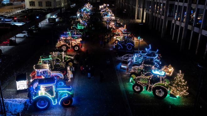 Die weihnächtlich geschmückten Traktoren begeisterten die Menge