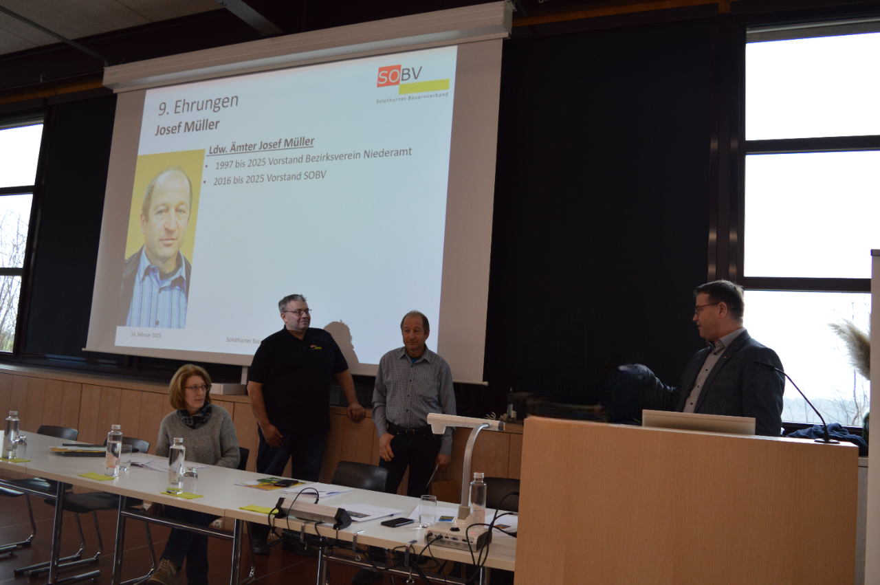 An der Delegiertenversammlung des Solothurner Bauernverbands (SOBV) wurden die Vorstandsmitglieder Katrin Lindenberger und Josef Müller verabschiedet. Patrick Burren, Jonas Stich und Reto Hauser wurden als neue Vorstandmitglieder gewählt.