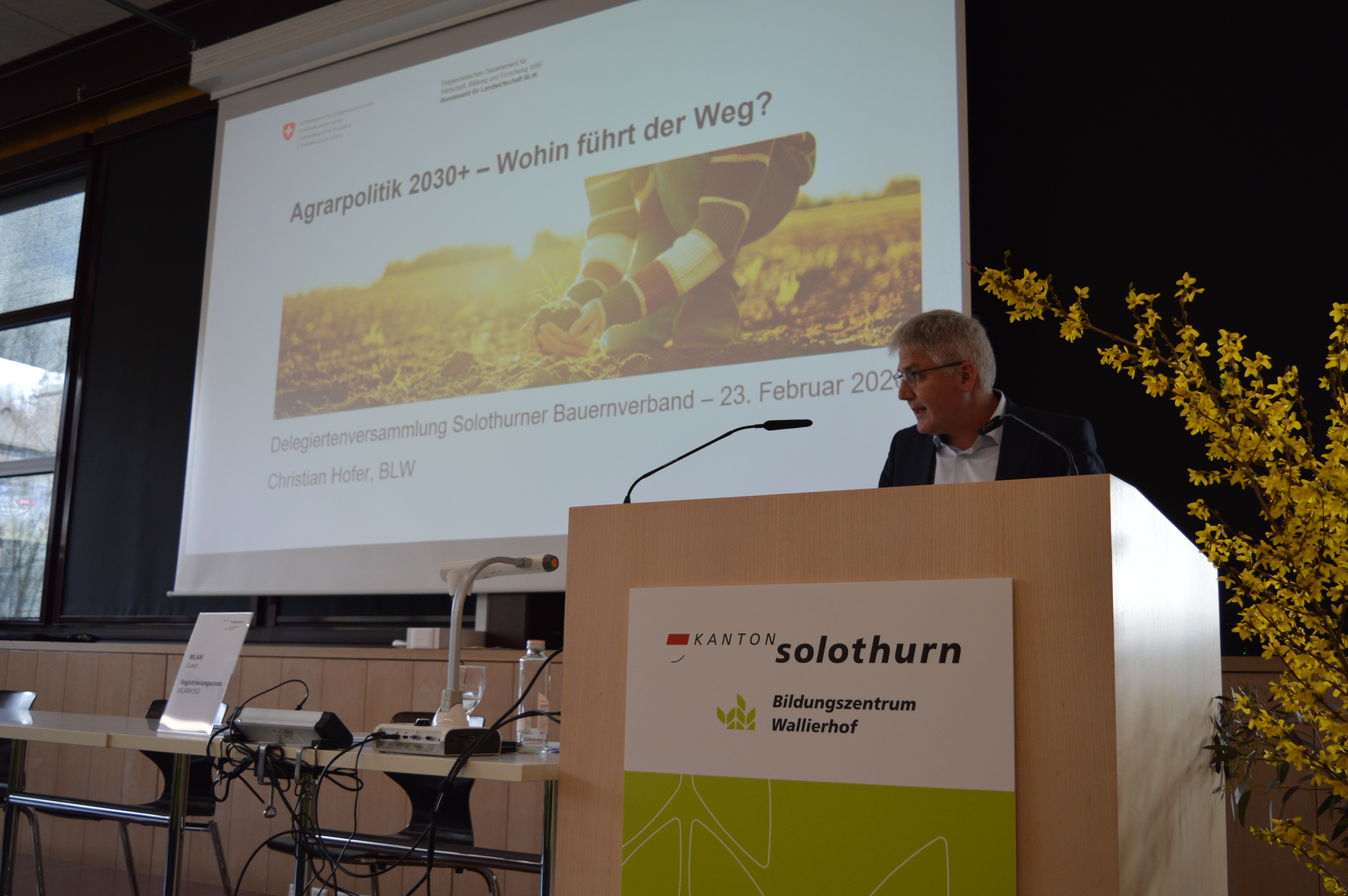 Gespannt war die Versammlung auch auf das Referat zum Thema «AP 2030+, wie geht der Weg weiter» von Christian Hofer, Direktor Bundesamt für Landwirtschaft. Hofer betonte, dass eine breit aufgestellte Arbeitsgruppe den Reformprozess mitbegleite und mitgestalte, damit die gesetzten Ziel erreicht werden können, im Sinne, die Landwirtschaft zu stärken, ihr mehr Verantwortung zu übertragen und die Bürokratie zu vermindern. Die Reaktionen auf dieses Ansinnen des BLW fielen von den Versammlungsteilnehmern durchaus positiv aus. Fragen stellen sich aber, wie die Steigerung der Einkommen der Landwirtschaft mit reduzieren Direktzahlungsrahmen bewerkstelligt werden soll. Zudem konnte unzureichend beantwortet werden, wie die gesamte Ernährungskette zur Zielerreichung und in die Übernahme der jeweiligen Verantwortung gleichermassen eingebunden werden kann. So stellten sich einige Teilnehmer die Frage, ob Zielvereinbarungen mit der Verarbeitungsindustrie und Detailhandel ausreichen und dem Konsument seine Aufgaben bezüglich Food Waste übertragen werden können. Der Weg geht weiter und die Möglichkeit der Vernehmlassung und Mitwirkung zur AP 2030+ steht allen offen und wird vom SOBV sicherlich genutzt, um die wichtigsten Punkte der Solothurner Landwirtschaft einzubringen.