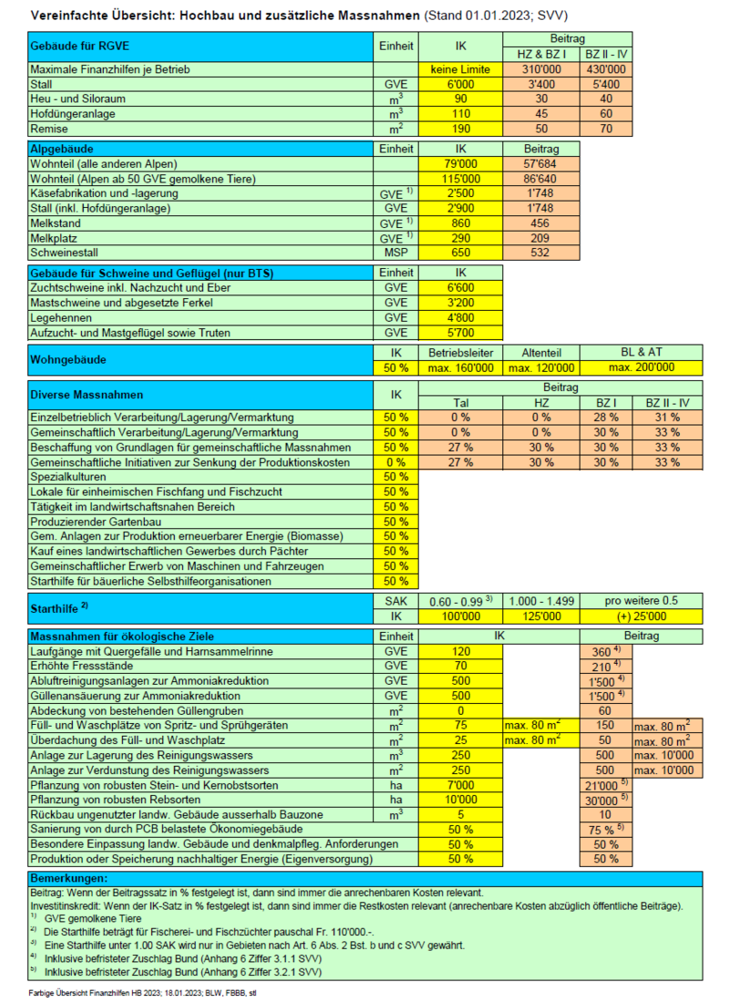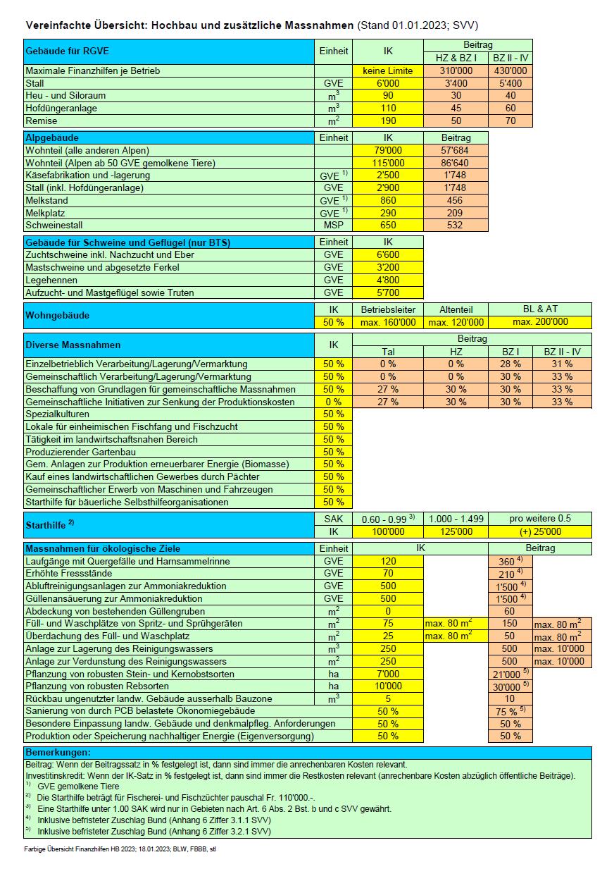 Per 1.1.2023 sind im Bereich der Strukturverbesserung diverse neue oder geänderte Bestimmungen in Kraft getreten. Bereits in früheren SOBV-Newslettern wurden einzelne davon thematisiert. Die nachfolgende Zusammenstellung des BLW bietet eine Übersicht über die geltenden Ansätze für Investitionskredite und Strukturverbesserungsbeiträge: