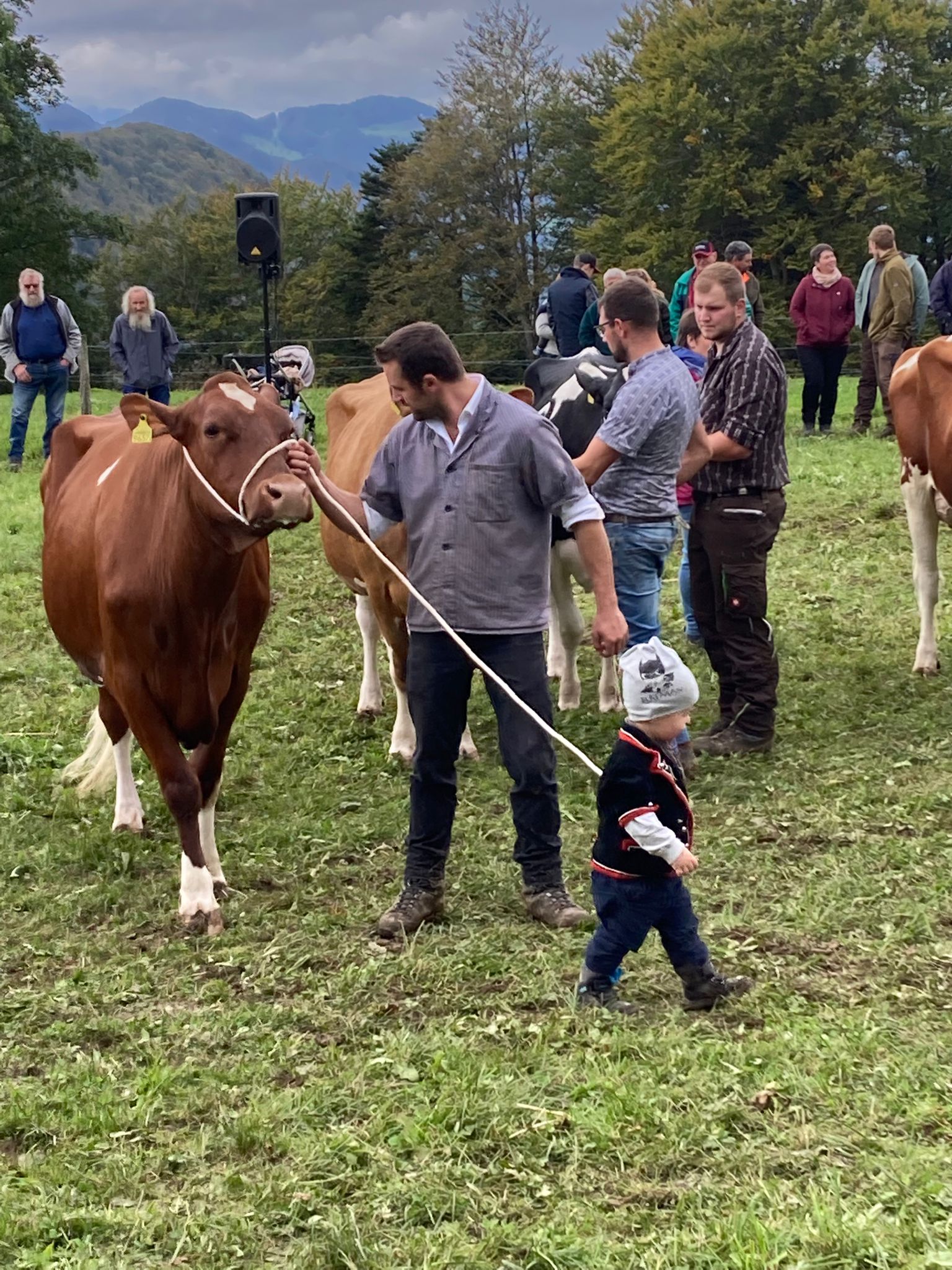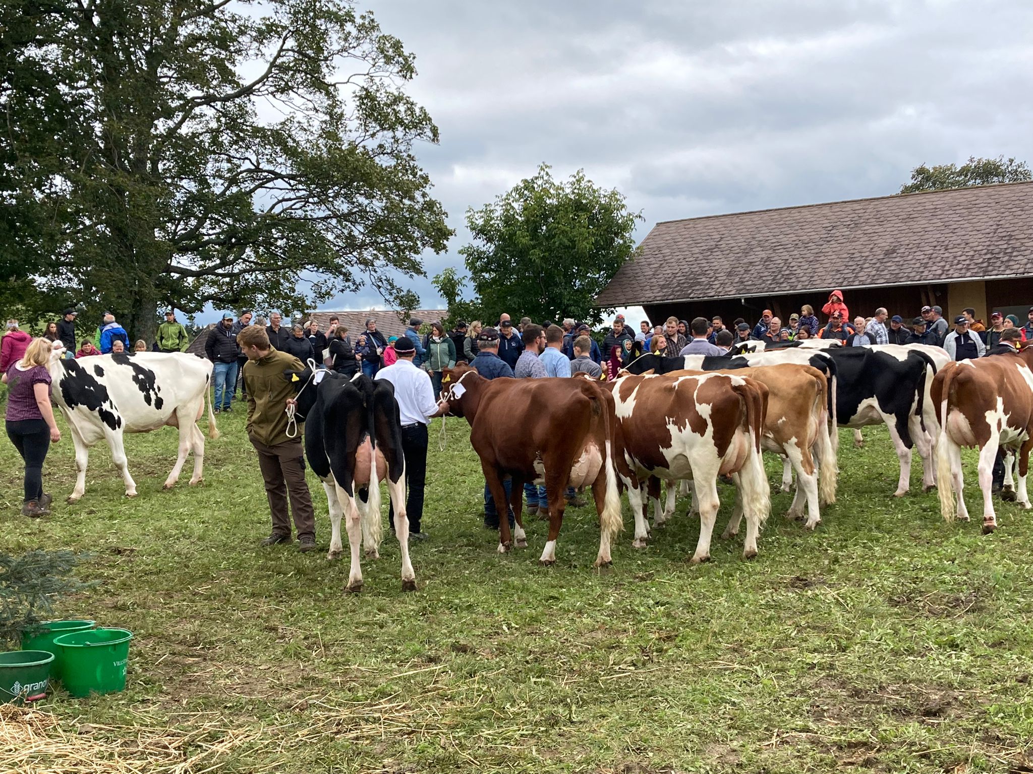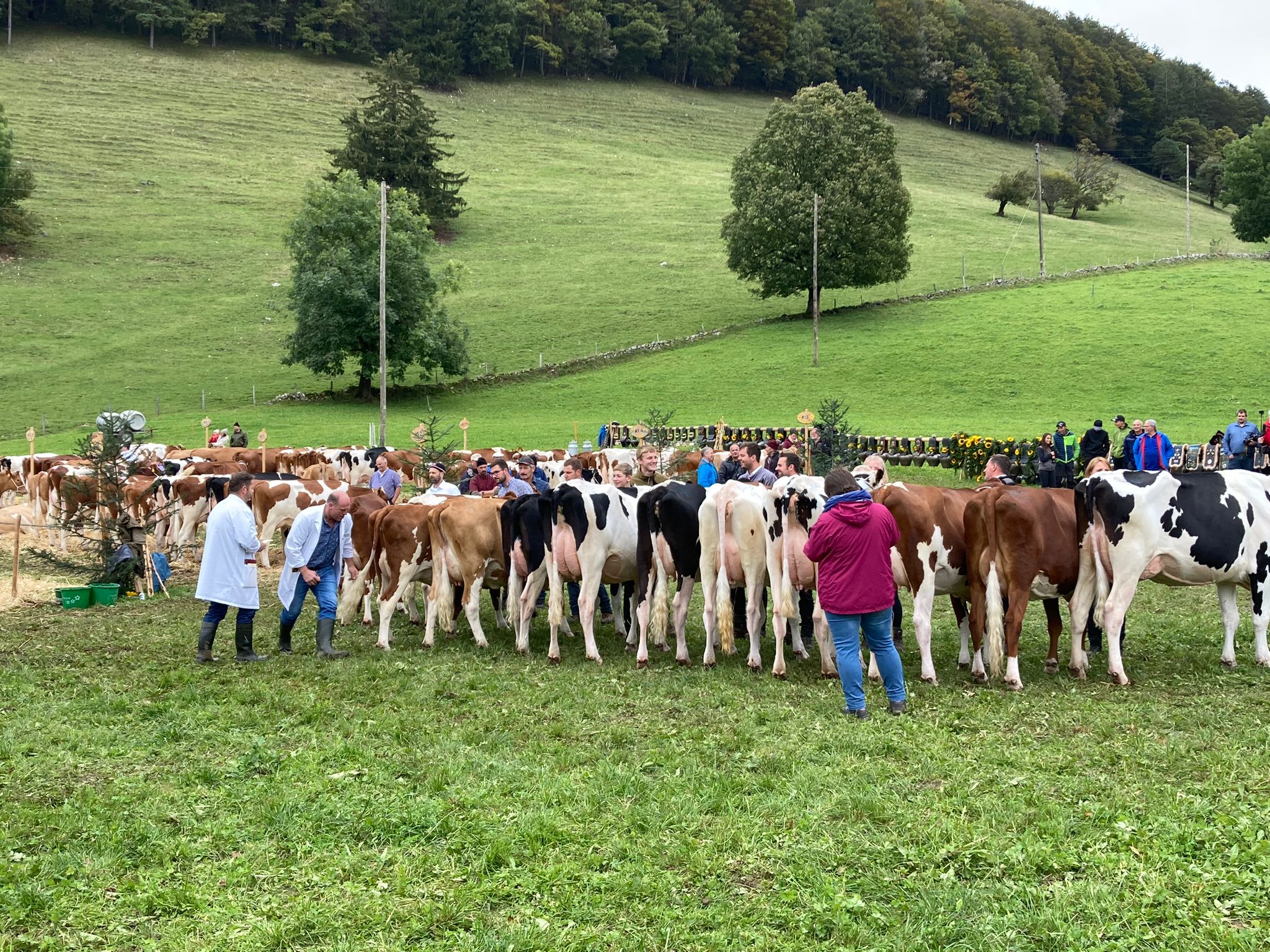 Der traditionelle Anlass, welcher mit viel Herzblut vom Viehzuchtverein VZV Passwang organisiert und durchgeführt wurde, lud auf dem Hof Mittlerer Passwang der Familie Lisser zur Punktierung und Rangierung der Kühe, zum geselligem Beisammensein, zum Fachsimpeln und zum Austausch zwischen der Bauernschaft und den Gästen ein. Im Mittelpunkt stand natürlich die Punktierung der Tiere. Die zwei Richter verteilten die Noten und stellten die Kühe anschliessend in der Rangfolge im Ring ein und kommentierten die Ergebnisse. Der jeweiligen Siegerin wurde der Wanderpreis, eine Glocke, umgehängt. Die rund 80 vorgeführten Tiere der Rassen Simmental, Swiss Fleckvieh, Red-Holstein und Holstein überzeugten durch hohe Qualität und Ausgeglichenheit. Die jahrelange Zuchtarbeit, der grosse Einsatz für das Tierwohl und der Berufsstolz zeigte sich an der Viehschau eindrücklich. Dieses Herzblut überträgt sich offensichtlich auch auf die jüngeren Generationen der Züchterfamilien und auf ihre Angehörigen. Oft sind drei bis vier Generationen der jeweiligen Züchter auf dem Schauplatz anzutreffen und die Arbeit geht Hand in Hand.
