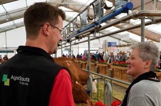 AgrarScouts suchen an Messen, Events oder auch in Lebensmittelmärkten das direkte persönliche Gespräch mit Konsumentinnen und Konsumenten. Durch den offenen und respektvollen Dialog trägt er zu einem positiven Image, Verständnis, Vertrauen und Support für den eigenen Betrieb und für die Landwirtschaft allgemein bei.