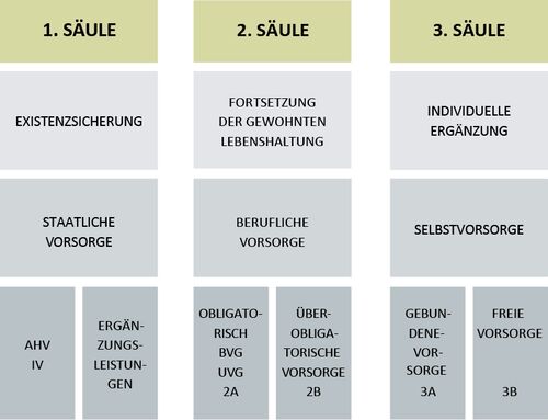Das schweizerische Vorsorgesystem für Alter, Tod und Invalidität beruht auf dem Dreisäulenprinzip: